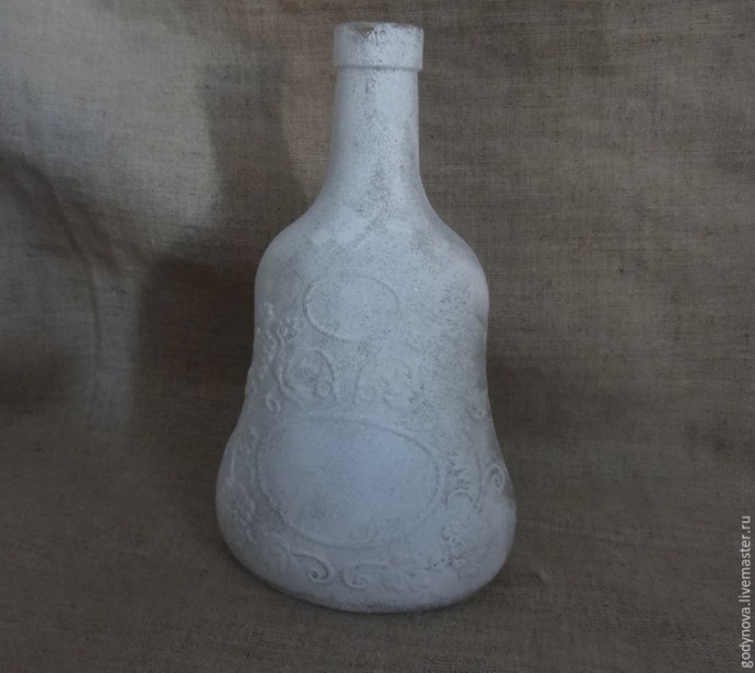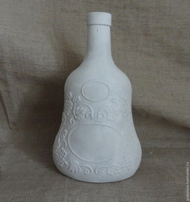 Вот теперь получилась замечательная белая бутылочка. Отлично стал виден рисунок: виноград и виноградные листья.