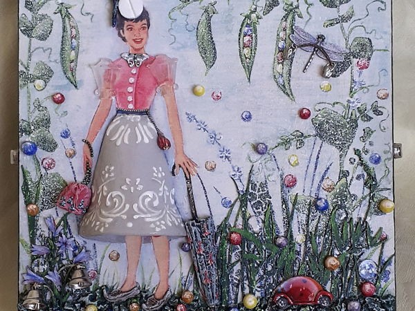 Поэтому я приглушила яркость фона белой краской, нанеся её на рисунок спонжем.