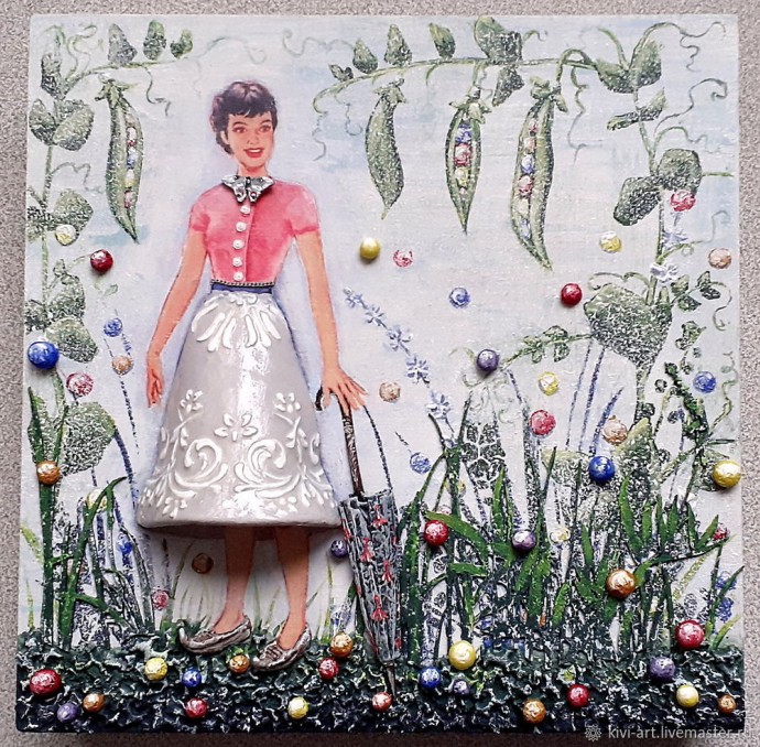 «Вложила» разноцветные горошины в стручки и «рассыпала» их по всему полю.