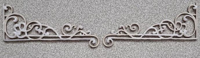 Теперь мне предстояла работа с чипбордами. Я выбрала два симметричных фрагмента, из которых собиралась сделать имитацию металлических декоративных элементов.
