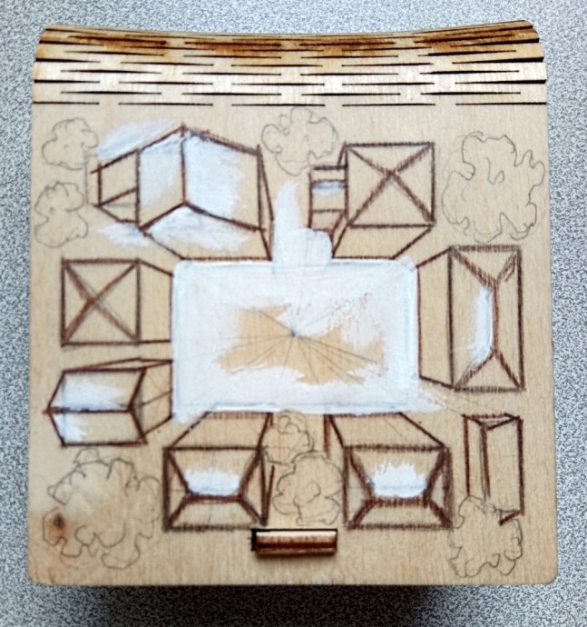2. Если размер работы позволяет, делаем детализацию домиков — рисуем окна и двери по тем же правилам перспективы.