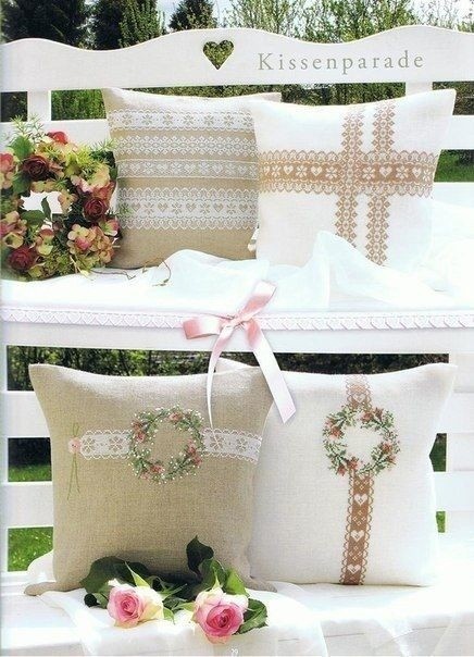 Декоративные подушки с вышивкой крестиком смотрятся великолепно.