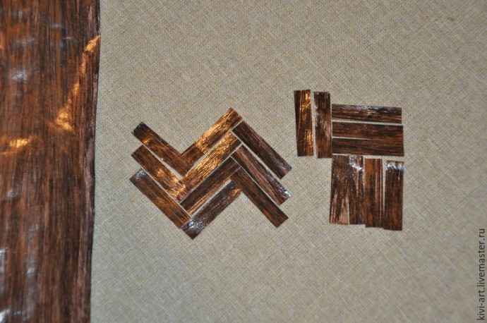Предлагаю вам поэкспериментировать в красками и разными по жесткости кистями. Советую сделать несколько видов "древесины" — разных по цвету и характеру нанесения мазков.