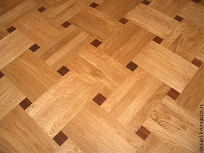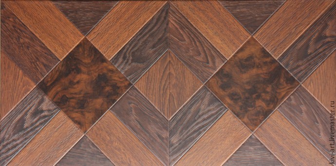 3. Складываем из полученных деталей мозаичный паркет. Это может быть элементарная традиционная ёлочка. Может быть более сложная плетёнка разных видов .А может быть — то-то замахнётся на Вильяма нашего плетёнку с врезкой отдельных художественных элементов.