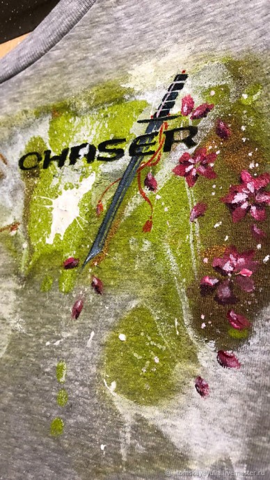 Показываю на примере моего заказа с росписью футболки на тему JDM Toyota Chaser. И именно та самая брендовая надпись CHASER должна была быть прописаны как на шильдике авто.