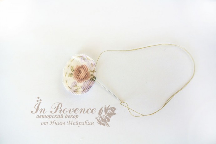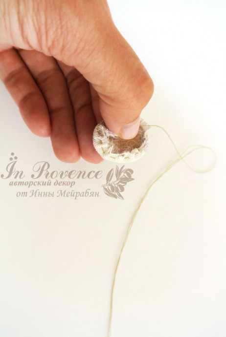 Стягиваем нитку и фиксируем края ткани при помощи клея.