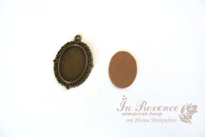 Вырезаем из плотного картона овал по размеру недостающего кабошона.