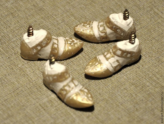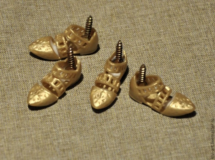 Конечно, можно было сначала туфельки позолотить, а уже потом вкручивать. Мне показалось, что если я сделаю так, как сделала, то получится всё аккуратнее.