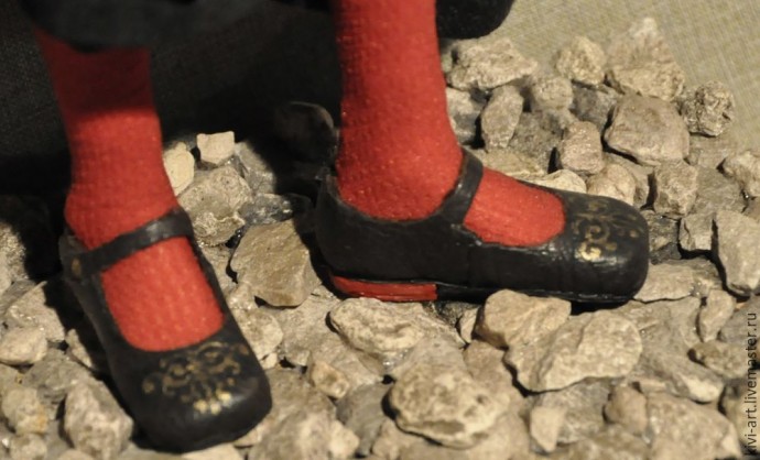 Именно с них началась вся эта история со шкатулкой! С самого начала я знала, что ножки моей шкатулки будут обуты в туфельки или сапожки. Купить такие готовые ножки я, конечно, не могла. Но меня это не пугало, так как опыт в создании обуви в таком масштабе у меня есть.