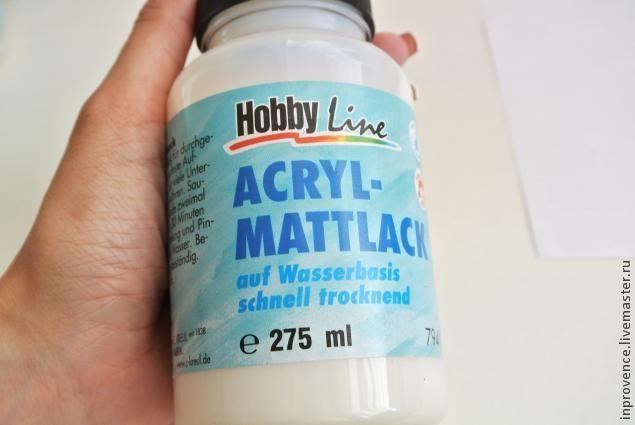 12. Затем покрываем кольца внутри и снаружи 4-5 слоями лака с просушиванием каждого слоя. Слои должны быть максимально тонкими, чтобы избежать подтеков при сушке.Еще одна прекрасная альтернатива - использование лака-спрея, но этот способ приемлим только в хорошо проветриваемом помещении. Матовой или глянцевой будет поверхность колец, выбираете вы сами. Хочу пояснить, что лак, изображенный на фото, называется матовым, но на практике он глянцевый.