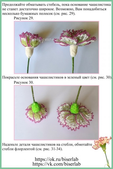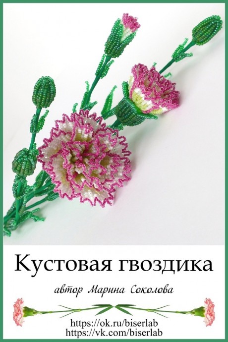 Нежная гвоздика из бисераАвтор Юлия Лебедева.