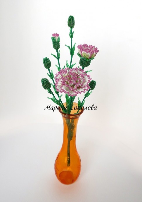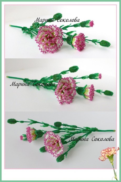 Гвоздика из бисераПоскольку живые гвоздики не имеют аромата, то эта гвоздика ни в чем не будет уступать настоящей.