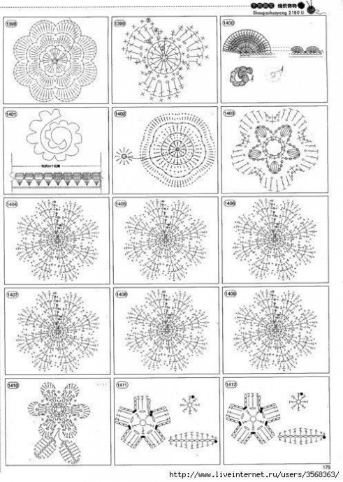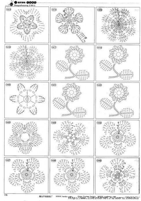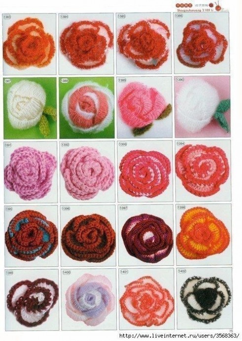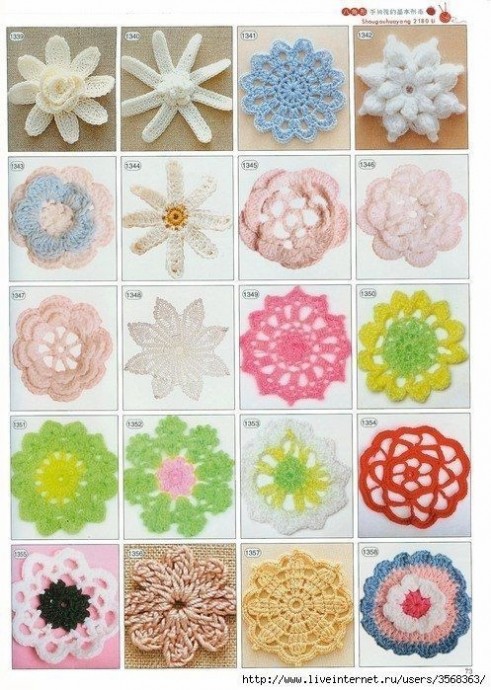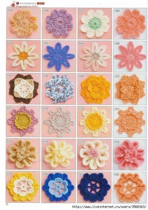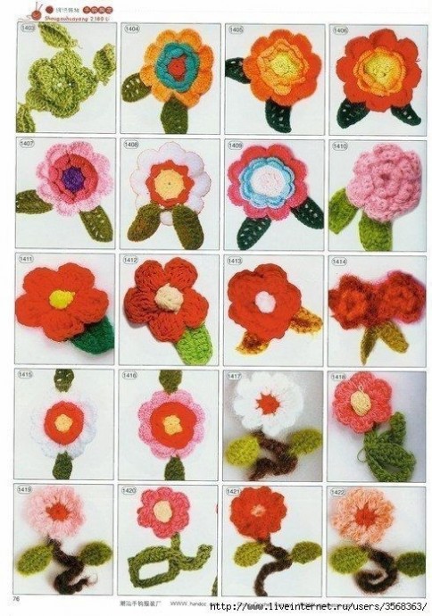 Забирайте в копилочки огромное количество схем вязаных цветов.