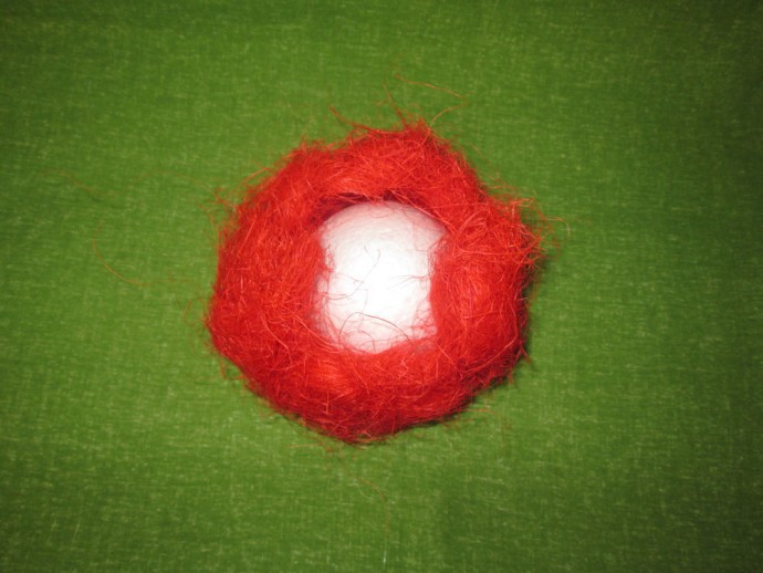 4. Ровно распределить волокна по поверхности шарика так, чтобы его не было видно.