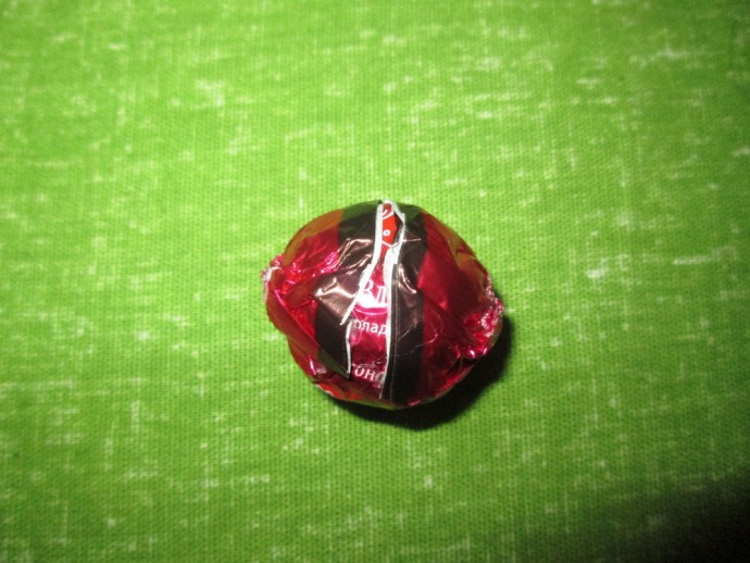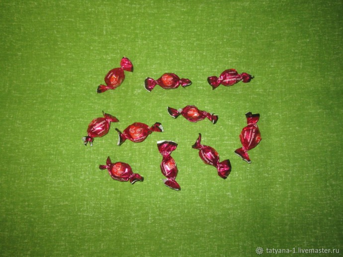 5. Подобрать конфеты вишневого или красного цвета, которые будут в дальнейшем «красоваться» на нашей вишенке. Конфеты лучше подбирать такого оттенка, чтобы он совпадал с цветом сизаля и не сильно выделялся на его поверхности.