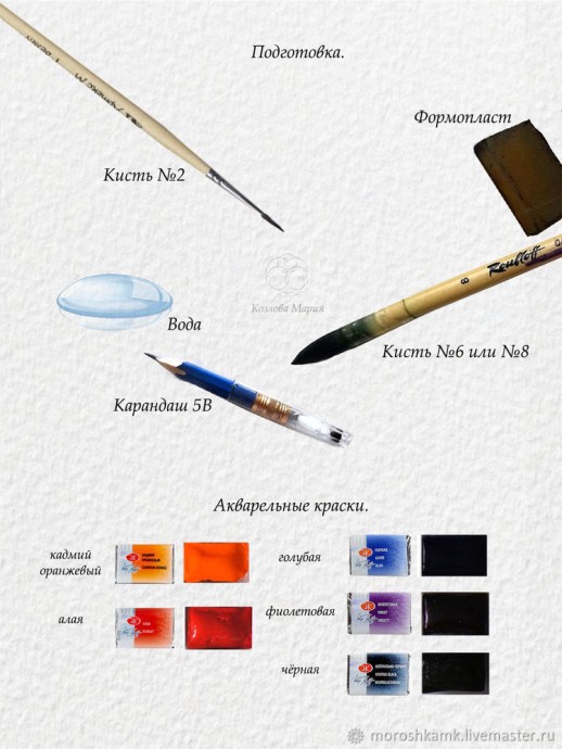 Я использую акварельные краски «Невская палитра», но можно выбрать краски любой фирмы.