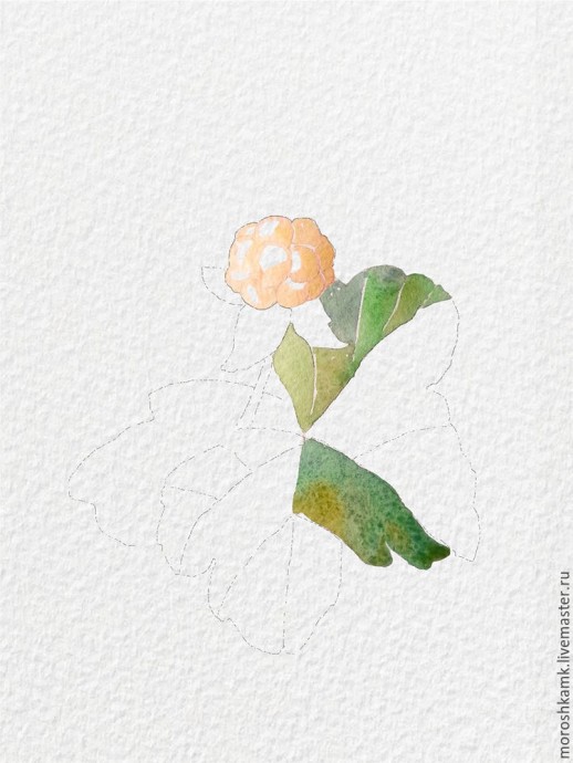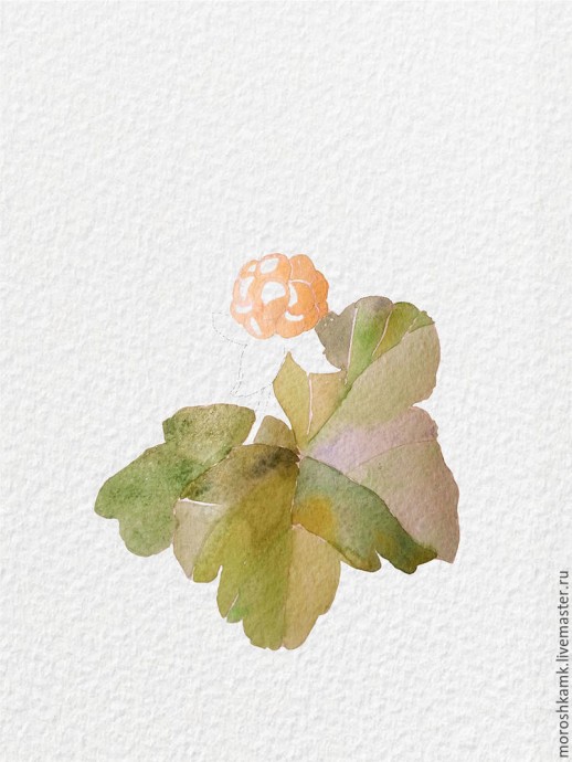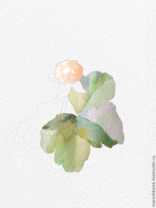 Рисуем акварелью ягоду морошку: часть 1