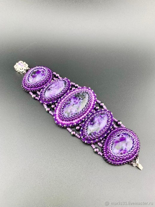 Создаём браслет из бисера и камней чароита: часть 1