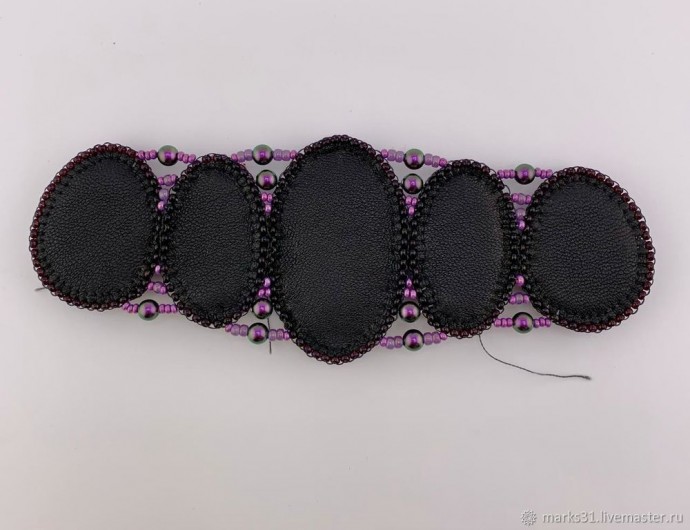 7. Теперь на обратной стороне наших готовых кабошонах делаем разметку. Намечаем центр кабошона верх, низ и по бокам. Это поможет нам в дальнейшей работе. Браслет будет ровный и аккуратный.