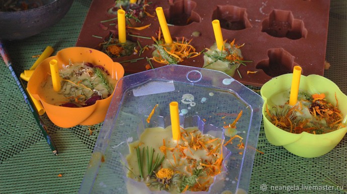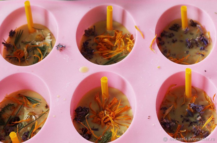 Пчелиный воск остывает довольно долго. Через минут двадцать после заливки я убирала трубочки. Затем вынимала саше из форм и оставляла их дозревать.