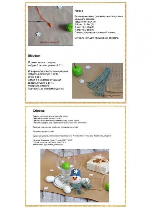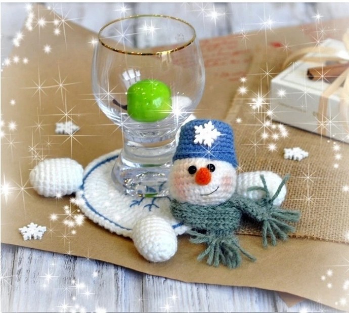 подставка под бокал "весёлый снеговик" крючком