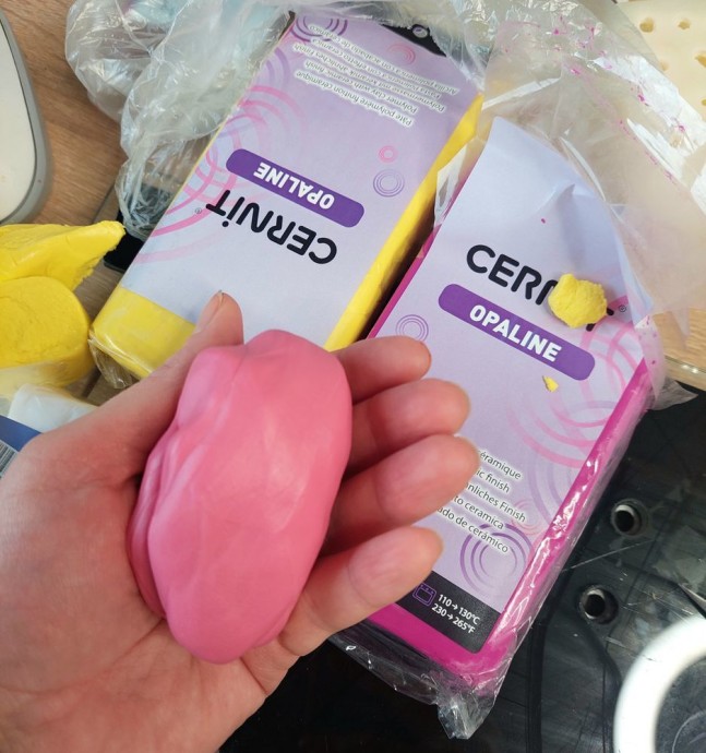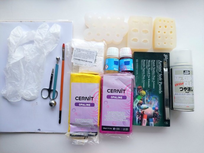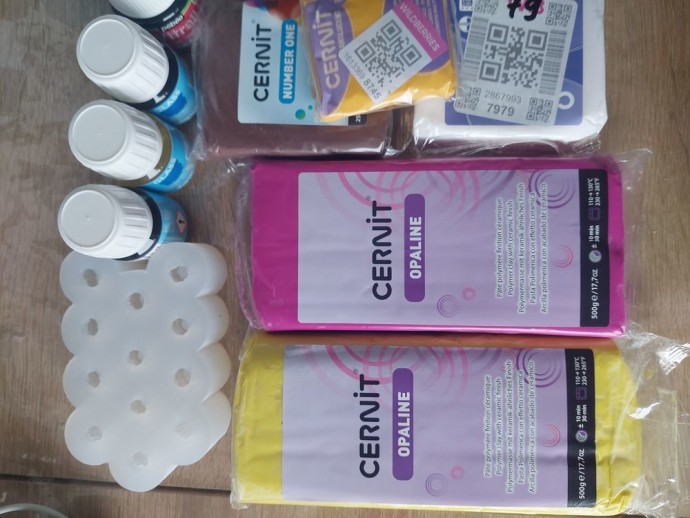 1. полимерная глина Cernit opaline: желтая, малиновая и белая Cernit translucent (прозрачная), можно взять малиновую Cernit translucent (без смешивания);