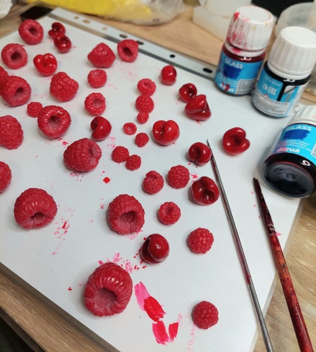 Люблю экспериментировать и осваивать новые техники и материалы. До недавнего времени отливала ягодки малины в молде из эпоксидной смолы, лепила из прозрачного холодного фарфора, зефирной глины. Испробовала разные виды витражных красок, и наконец, нашла тот идеальный рецепт, с которым хочу поделиться с вами.