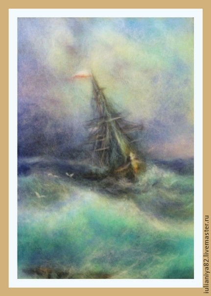 Этот мастер-класс представляет собой подробный фотообзор по созданию картины из шерсти на тему моря. Для вдохновения я взяла картину Ивана Айвазовского «Буря». Это не точная копия картины, а свободная импровизация из шерсти в формате 21-30см.