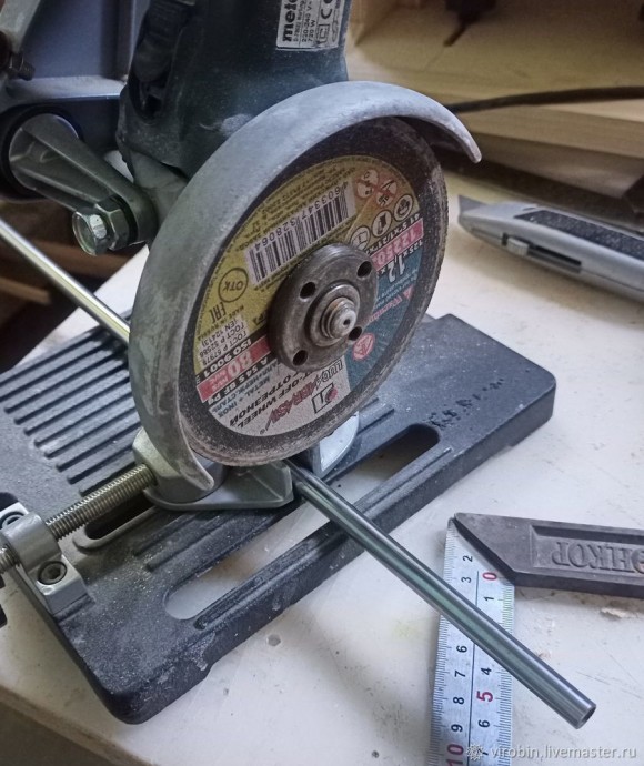 Выполните резку по размеру всех соединительных шпилек — размеры указаны в спецификации в дополнении к мастер-классу. Отрежьте трубки из нержавеющей стали по размерам, указанным в спецификации. С торцов всех металлических деталей снимите фаски. Инструменты: болгарка, ножовка по металлу, напильник.