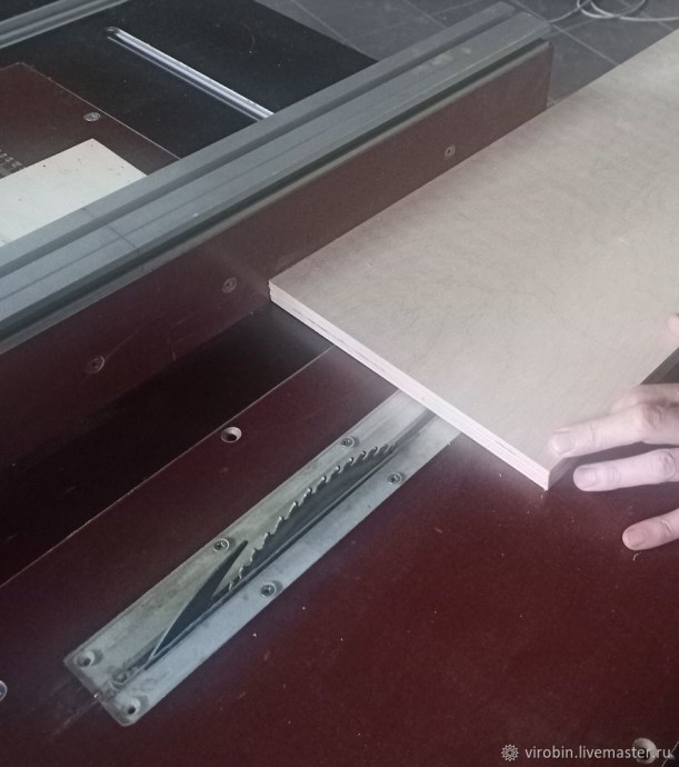 Выполните раскрой фанеры по заданным в спецификации размерам основания пресса и прижимной плиты. Обращайте внимание на сохранение прямых углов в подготавливаемых деталях. Для этой операции используйте циркулярную или торцовочную пилу.