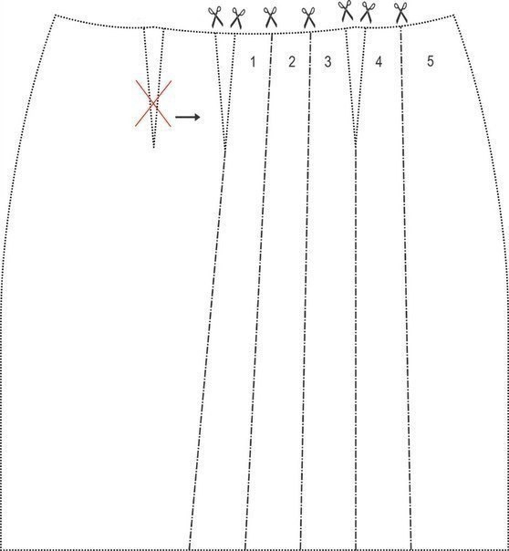 Элегантная юбка с драпировкойДля моделирования юбки нам понадобится базовая выкройка юбкиЗаужаем переднюю и заднюю половинки внизу по боковому шву на 2-3смНа задней половинке черти...