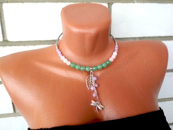 Сегодня мы сделаем колье на мемори-основе. Такие украшения хорошо держат форму, очень лёгкие и комфортные. И, как всегда, договариваемся сразу, что используем те бусины, которые у нас есть. А если добавляем, то это будет самое минимальное количество и самая приемлемая цена. У меня для добавки приготовлена нитка тонированного под аметист кварца 6 мм за 200 р., из неё будет использована примерно половина. Может быть меньше. Из фурнитуры нам понадобится проволока с памятью (она продаётся по 5-10-15 колец), резиновый шнур (продаётся от 10 см), замочки, колечки (желательно двойные), металлические шарики или диски, бейлы, инструмент 3 в 1 или длинногубцы и кусачки. Фурнитуру будем использовать самую простую и доступную, из бижутерного сплава. У меня есть листик и стрекоза.