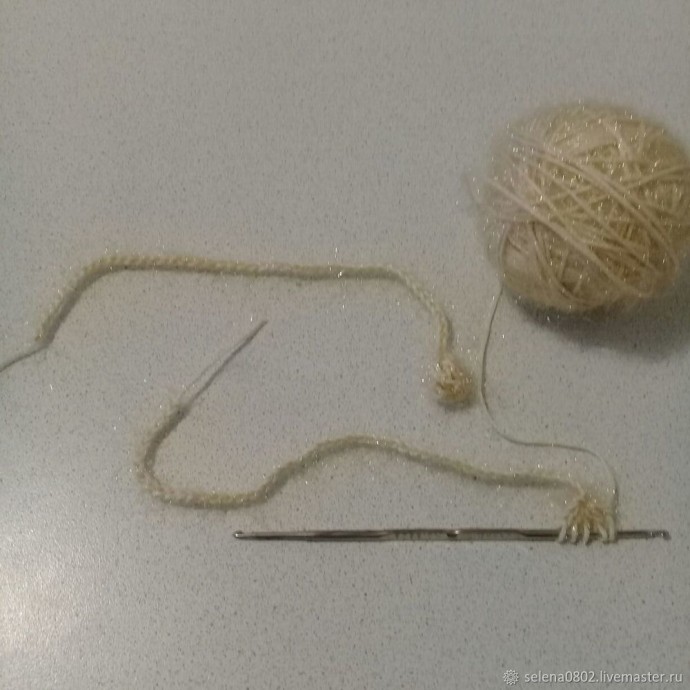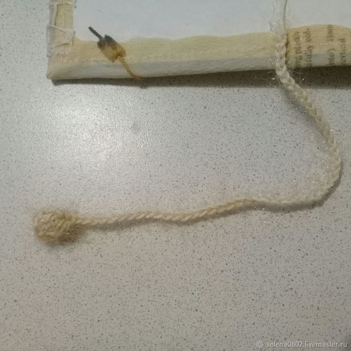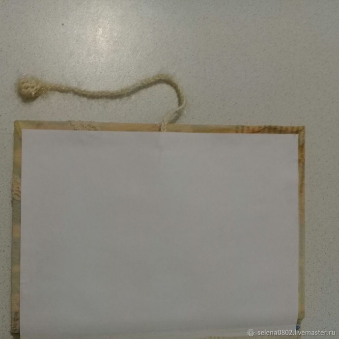 7. С помощью крючка вяжем завязки для альбома. Приклеиваем их по центру края обложки с изнаночной стороны.