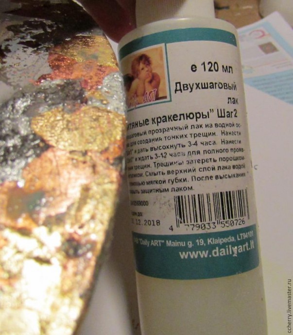 В данном лаке, нижний слой при высыхании становится липким. При нанесении второго шага, после растрескивания, в трещинах обнажается первый шаг. И втираемы пигмент приклеивается, и фиксируется.