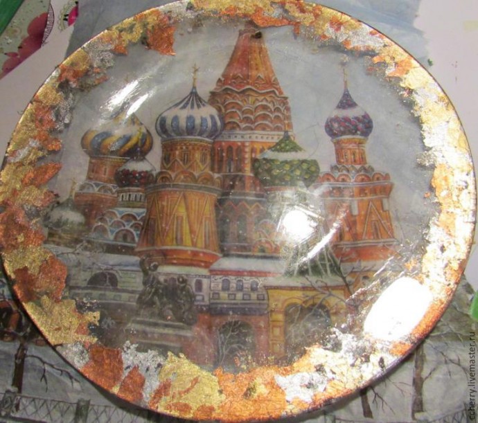 Тарелка сувенирная "Моя Москва" в технике обратного декупажа: часть 2