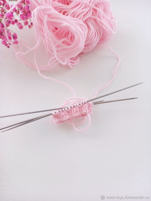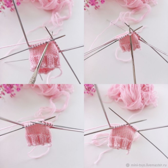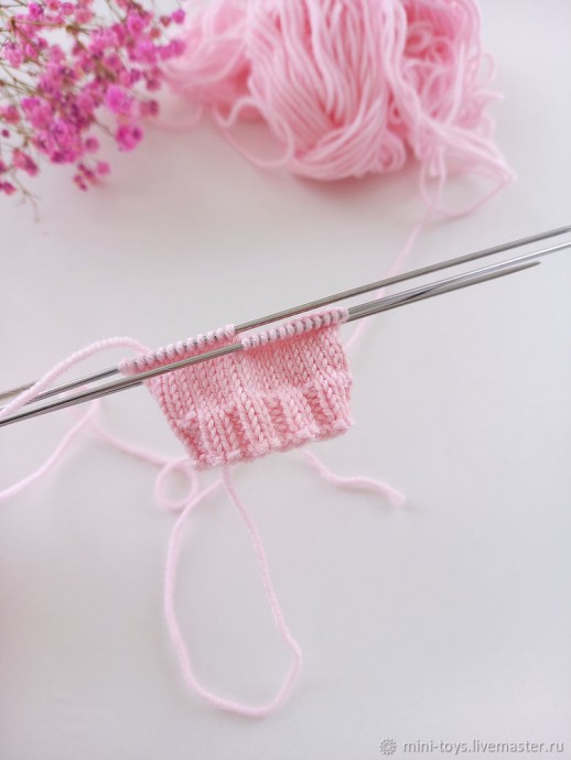 Далее вяжем резинку 2×2 (2 лицевые, 2 изнаночные)