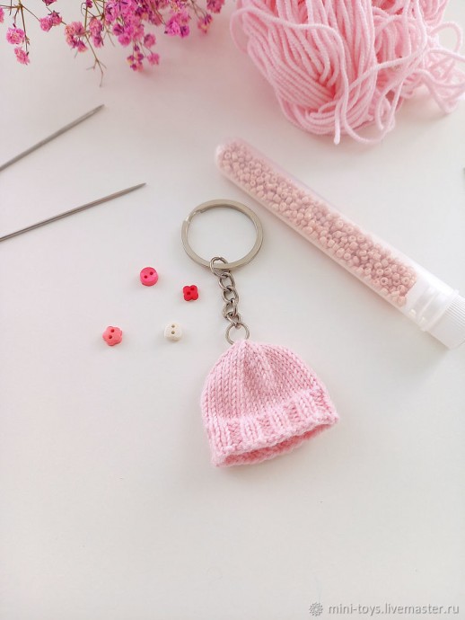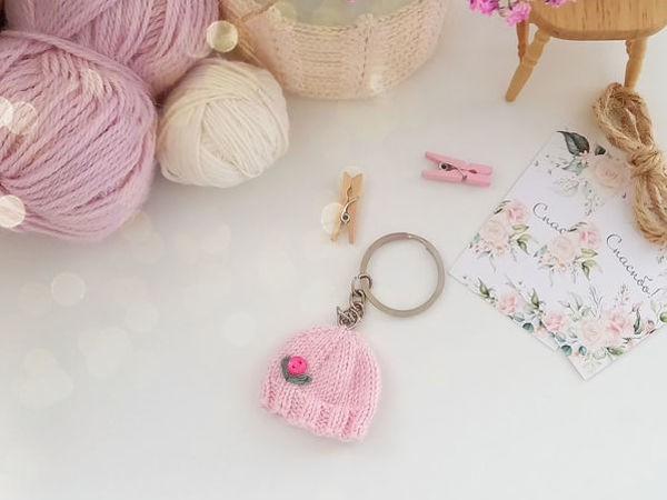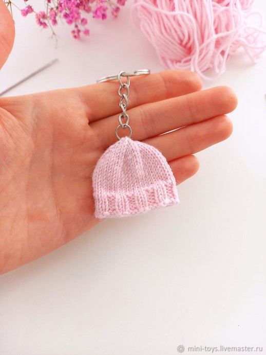 Если вы выберите другую пряжу, то подберите соответствующую ей размер спиц. От этого зависит и размер брелка.