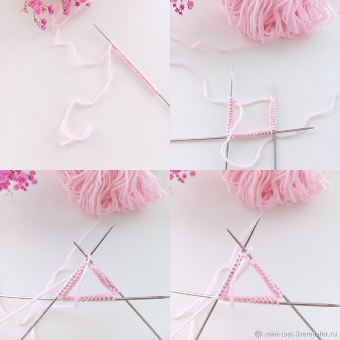 Вязать будем по кругу. Набираем 36 петель + 1 петля для соединения. Распределяем 37 петель на три спицы, провязывая их лицевыми. Должно получится 13 петель на первой спице и по 12 петель на двух других спицах. Соединяем вязание в круг