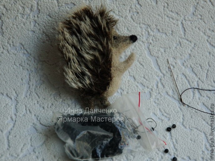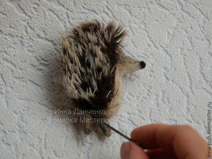 Делаем валяную брошку "Ёжик в тумане": часть 4