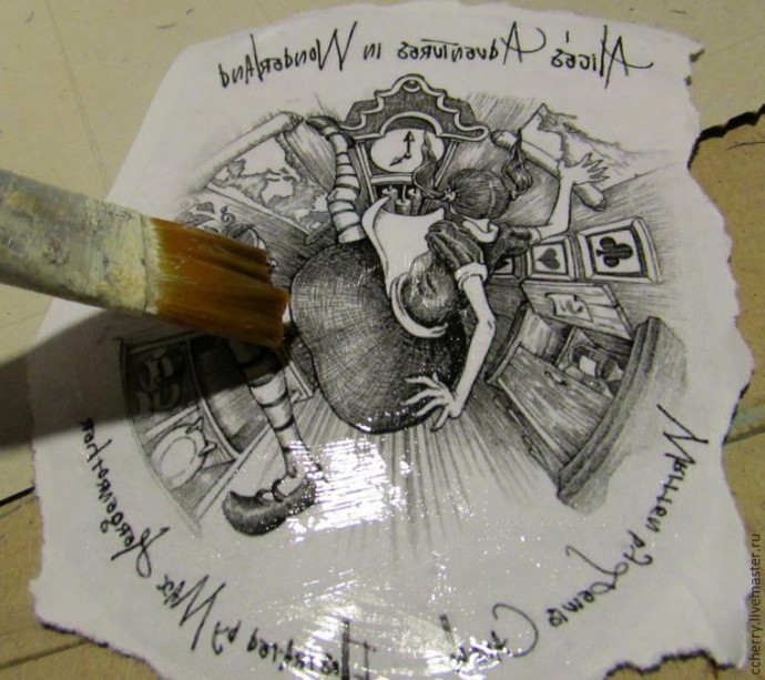 После просушивания мочим ваш лист с рисунком и скатываем его.