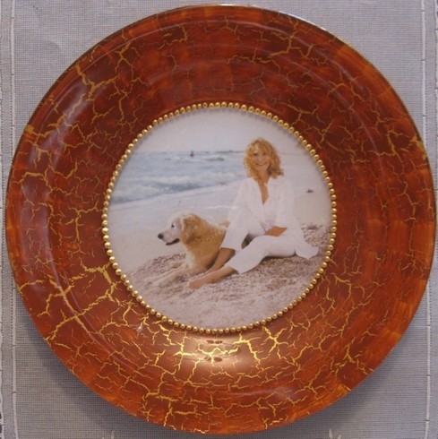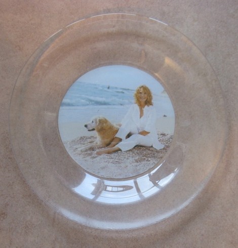 1. Обезжирим спиртом стеклянную тарелку, приклеим вырезку из журнала (предварительно замачиваем на 10-15 минут)