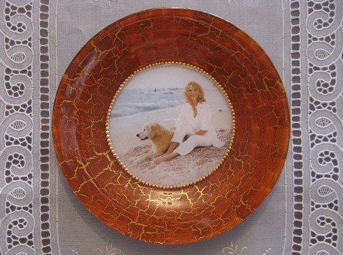 Продолжаем разговор о псевдо-кракле, созданном при помощи ПВА. Оговорюсь ещё раз, что необходимость в этом возникает, когда нет возможности приобрести настоящие кракелюрные лаки. Обратите внимание, на этой тарелочке трещинки совершенно другие. А ведь использован тот же клей ПВА.