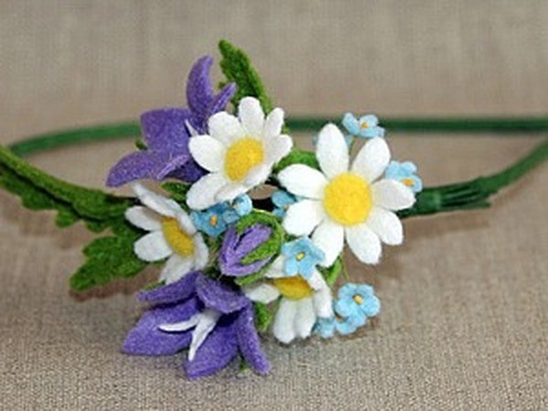 Из получившихся цветов собираем букет и крепим его к ободку.