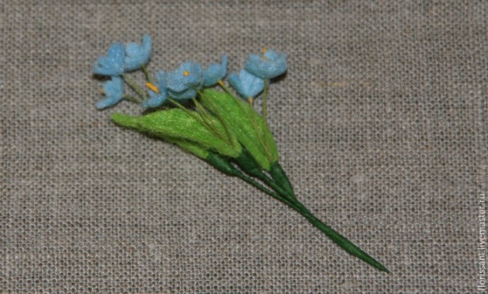 Цветы незабудки формируем также, как и предыдущие: перетёрли, сформировали и обработали лаком.