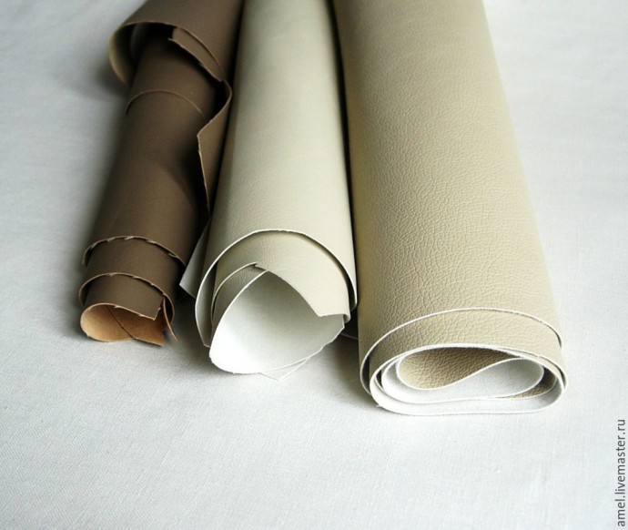 1. Эко-кожа, молочного цвета и цвета кофе с молоком,толщиной примерно 1 мм.