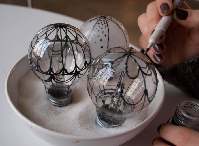 Энергосберегающие лампочки тоже можно использовать. Только покройте их краской полностью.
