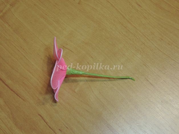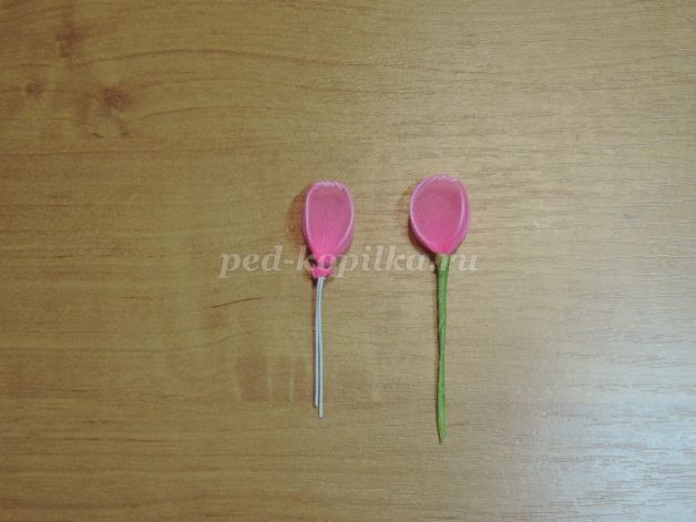 11. Обтянуть бутон капроном. Стебелек обмотать лентой.