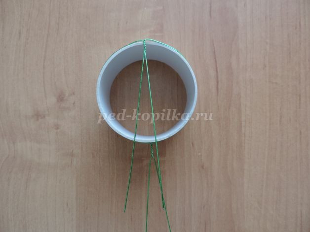 9. Изготавливаем бутоны. Скрутить по центру проволоку сделав 2-3 витка и закрепить на шаблоне.