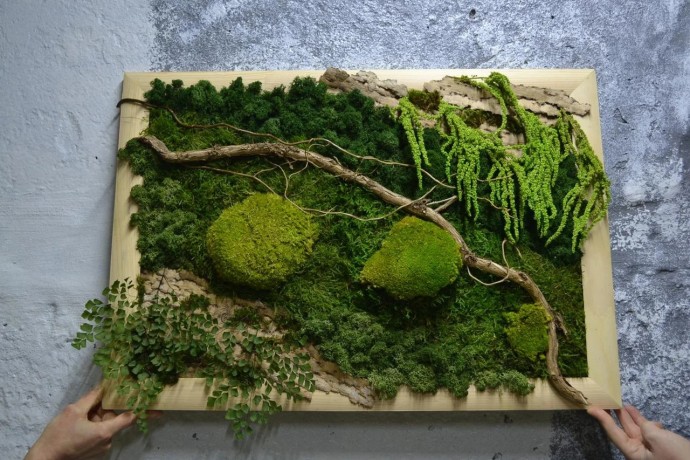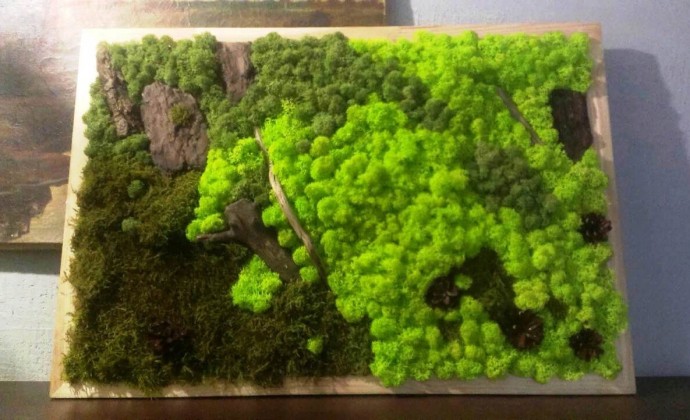 Из бальзамированного таким образом мха можно создавать гипоаллергенные картины и композиции для декора. Только нужно помнить, что влажность воздуха в помещении должна быть не менее 40 процентов, иначе мох высохнет.