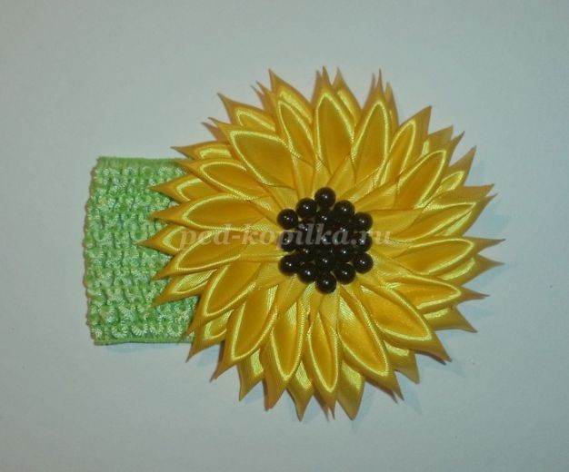 Повязка на голову для девочки из атласной ленты: часть 2